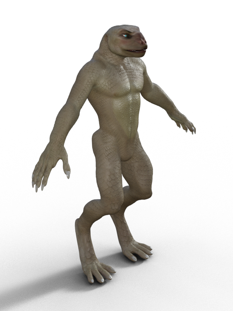 Tried a whole bunch of skin textures to see what I liked on my new G8 reptile. I think the winner is Dolb plus SmidA's reptile displacement maps. If I go this route, though, I'll definitely need to edit out the nipples.