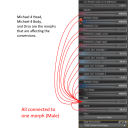 I think I've found the problem(s). The morphs in the picture load in with all of the G2M to G8M characters that I've created/converted so far. The morphs can be dialled out seperately. I think the Michael 4 morphs were created, when I converted Orso.