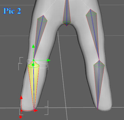“Now, on the shin bone, move the end point so that it is centered at the bottom of the shin, and align that bone as well.”