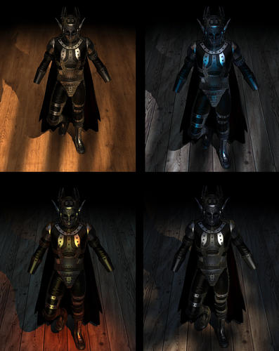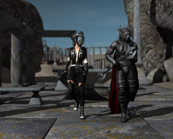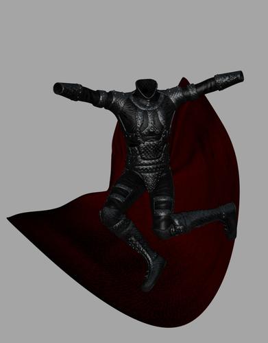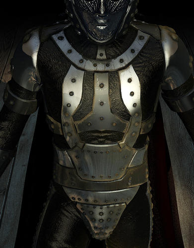 Edited to add updated image using Poser materials in Poser Pro 2012 instead of DAZ materials. I like the cloth black look of the first one as well as this shiny armoured one.