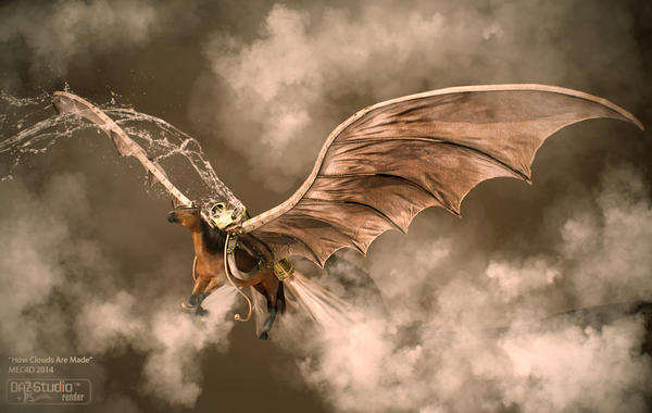 I am working on materials and in a break I made quick render adding the horse to Aviatrix Flying steam machine , more surrealistic but I had the taste for .. lol Now you know how clouds are made .. [/quote