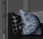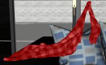 My second try was pulling the knot area with the mesh grabber a lot closer to the furniture so that the rest catches up and they kind of drape together.