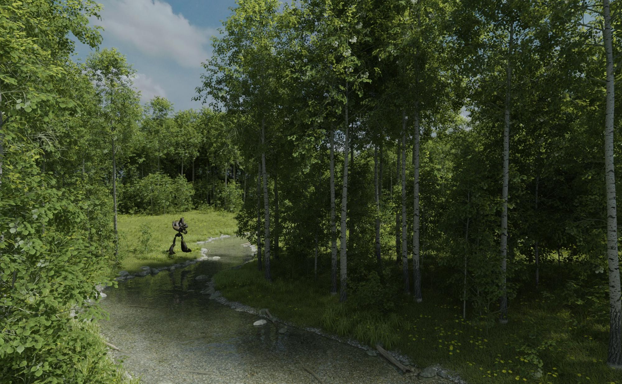 I found something to do that I had not attempted before, HowieFarkes UltraScenery - Realistic Landscape System. Lots of homework today, but a few minutes ago, my first successful render completed. Nothing as good as what has been in the thread, but, I got it done! I put The AntFarm's Rock Golem in there.