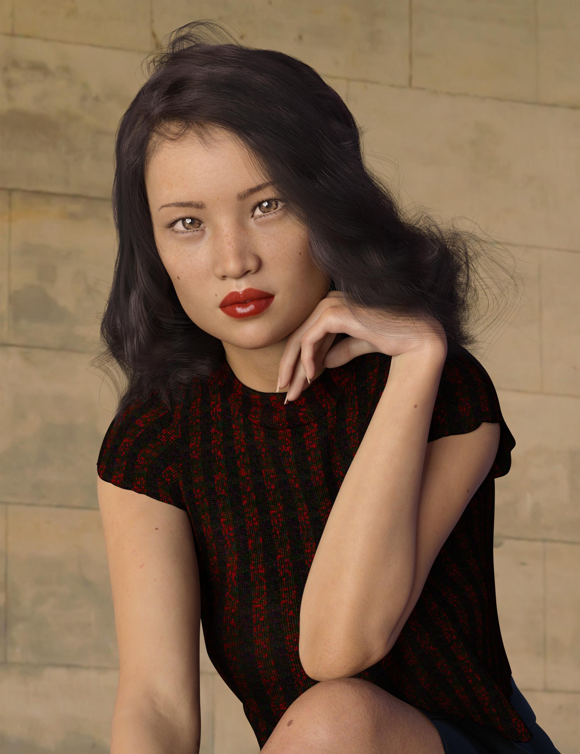 This is Yoshie for Mei Lin 8. The outfit is dForce Emo Style for Genesis 8 Female(s) with textures from dForce Emo Style Outfit Textures. I haven't used either product before, as far as I remember. The hair is dforce Soft Curls for Genesis 8 and Genesis 3 Female(s) with some of its morphs dialed and some simulation settings changes. I have used this hair before. The pose is from Fashion Editorial Poses and Expressions for Genesis 8 Female, which I have used many times, but not this particular pose from that set. The lighting is an HDRI from Click N Render IBL Set. Edit: iRadiance - Light Probe HDR Lighting for Iray - Expansion 4