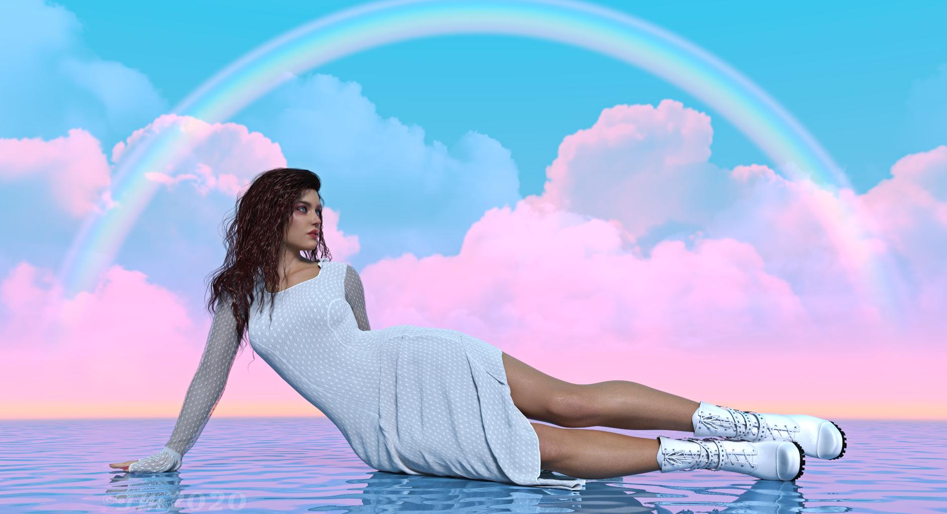 Theory of Light-The Heavens by Fabiana at the other store. It incudes a bunch of options for backgrounds, lighting plus it includes the rainbow, the background clouds (with multiple options) and a couple of different floors. The only thing was I expected the girl to be colorful too because of the enviroment but it still makes good lighting. My above image with Valentino also uses this lighting pack.
