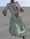 The futuristic dress: The cloth is only two material zones when you would expect four  (jacket, shirt, underskirt, overskirt) and another zone for the edge and the straps, and yes, that is fixable, but well... I like the jacket more than I like the skirt. There's pokethrough in the back between the two skirt layers