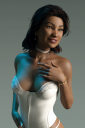 I must admit I actually like the high collar thing, and it almost works better with just morphs than with dforce. The collar collapsed almost completely here, and there's something weird going on with the left breast next to the arm.