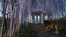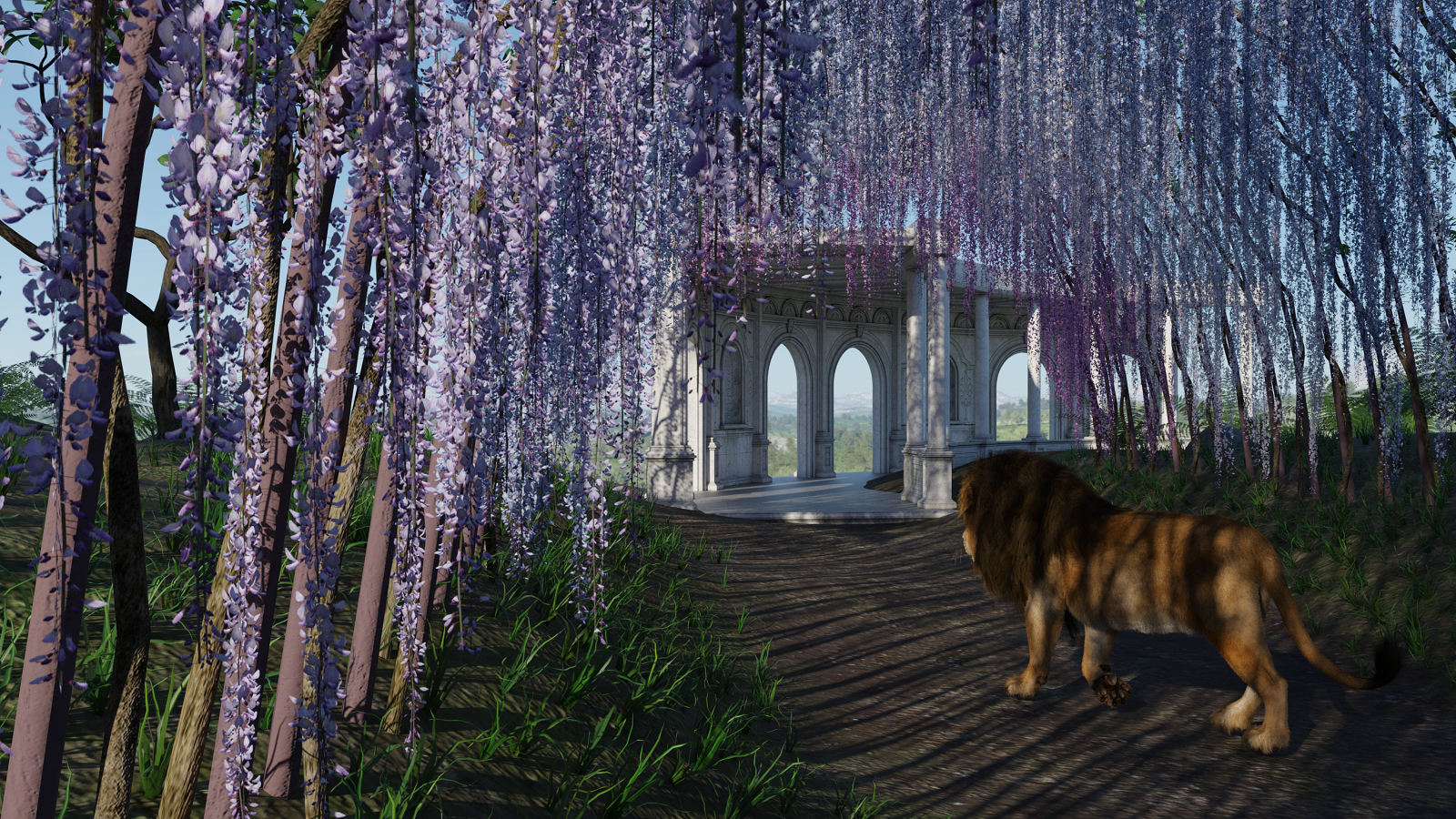 Today I picked up Gorgon Hallway as one of my free items with the bundle. As I have been whittling down the items being offered by Daz to choose from, more items that I never paid attention to before have come to my attention. The hallway showed up for me a few bundles back, so I wish listed it. Loading it up, using the RSSY 3DL to Iray converter on it, then adding Wisteria Tunnel, an HDRI, High Peaks (I seem to use it all the time when I need a great background) and then I decided to add the king in there, AM's Felidae. An hour and a half rendering on the Iray catalyzer and stopped at 97%. I wanted to share the beauty that takes me back to when I lived in the suburbs of Athens Greece. You never knew when you would come across a ruin in the oddest place.