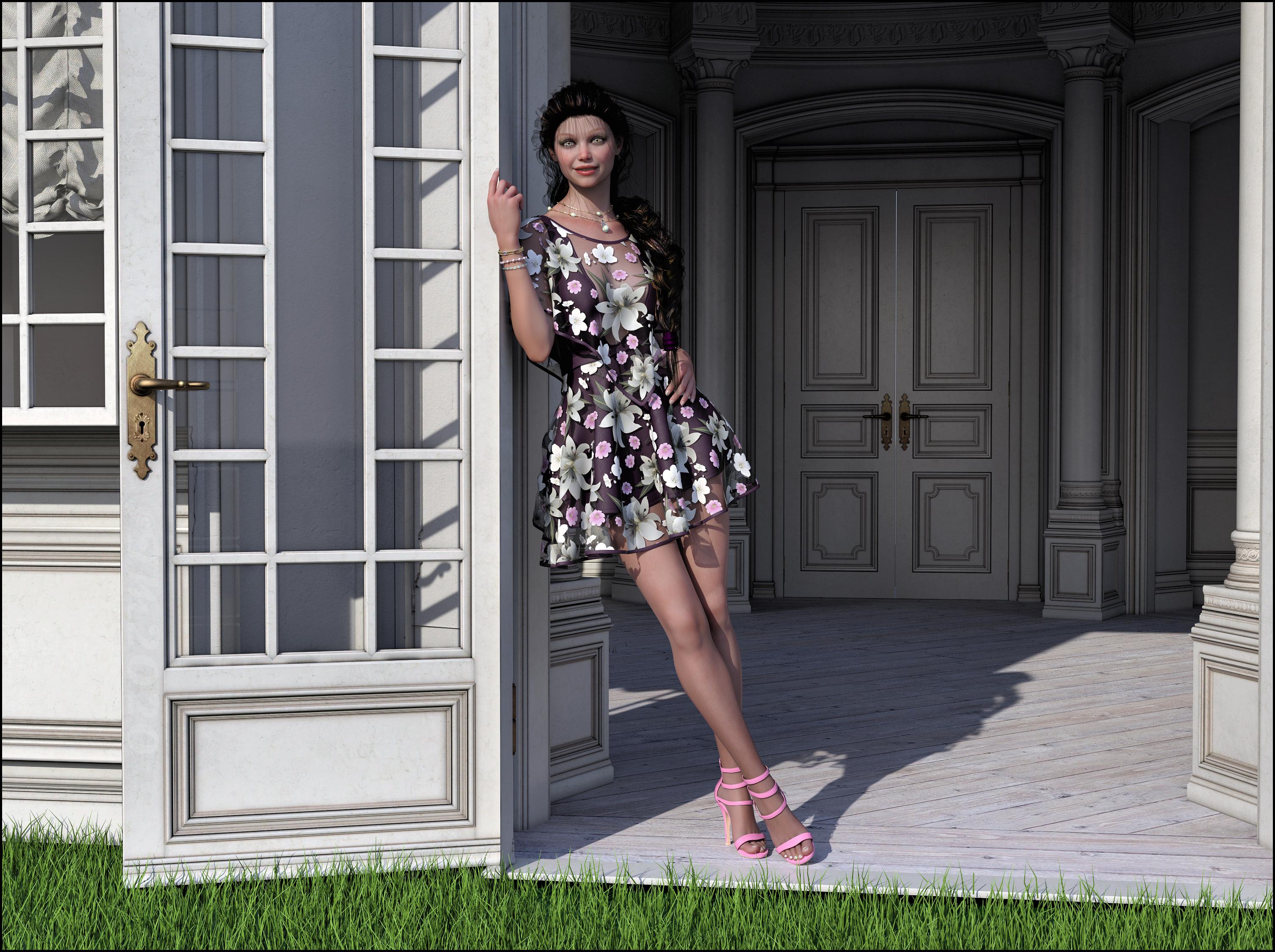 Rural Chateau-This is an older product but it was the first time I have used it.  Was expecting it to be bigger but its pretty and renders well!  Ill have to play more in the future with it.  I did not use any of the props due to them not showing in the image.  It has door open morphs!  I couldn't find them at first but if you exand the Doors then look under Door L and R its there.  It does have this weird piece that sticks out on the outside, its part of the floor and I don't know why its there.  Geometry editor wouldn't let me select it so I postworked it out.