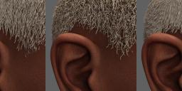 First and second image are closeups of the forehead and hair under (undercut), All Hair Down morph (which is basically pre-draped state), All Hair Raise (can be used also after the sim if hair gets too glued down by force), All Scale (puffs up the hair physically in size making strands a tad longer), All Hair Back, All Hair Front, All Hair Left, All Hair Right, All Twist Left, All Twist Right, Front Forward (divides the bangs and moves them further forward). All morphs dialed to 100% each image a separate morph, used on Style 03 hair (one that makes hair the puffiest as I think it shows moves to the biggest extent). No postwork, all images rendered to couple hundred samples in resolutions shown, HDRI 20 (default value) and lights from Fast Production Lights
