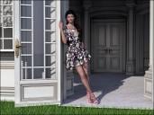Abby Holiday Dress-Honestly I would not have probably purchased this if it wasn't for the $3.99 sale.  Was not really impressed with the really low cut front with no option to cover besides the cape.  It comes with several color options plus some patterned options also for materials!!  Love this since so much now adays you have to pretty well by completely seperate packs to get any options.  The dress is cute though and it simed well with the pose I did. I ended up using Mesh Grabber on it to pull in the sleeve and skirt because I decided on the scenery after I posed, was originally just going for a  portrait type image.  It has jewelry and shoes!!  Im really liking this vendor and have previously picked up some of thier outfits because of this also!  It has several adjustment morphs and some wind morphs if you need a little extra to add.