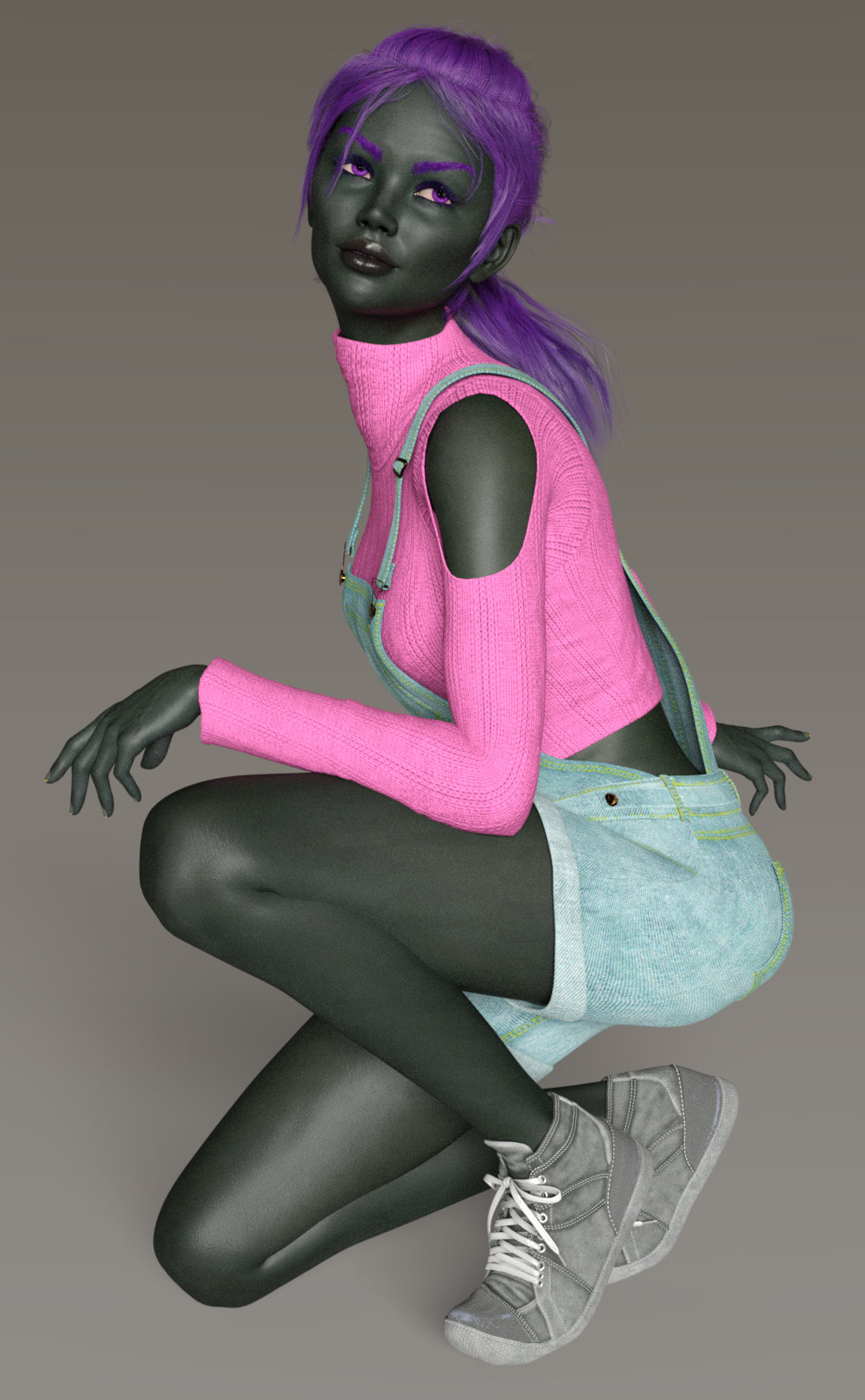 I used a new character to test, Abyss for Daisy 8, put the dungarees on her, JooJoo Sneakers and Variable Hair.