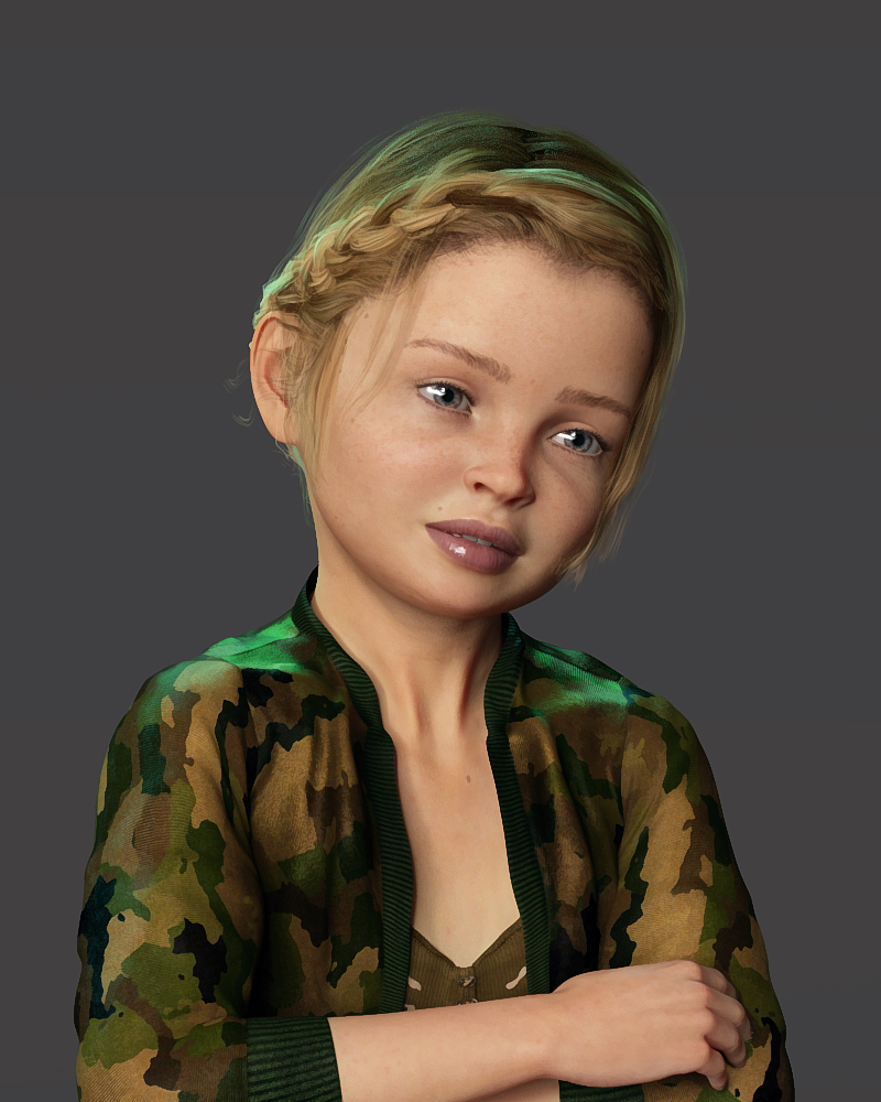 6 year old Astrid. I took off the makeup and put the lips at the neutral color. Voila, a cutie pie.