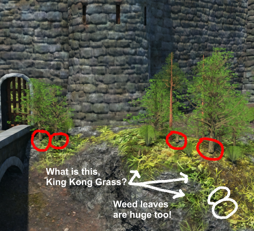And WOW, the grass and vegetation is so out of scale! I pointed out the grass, and look at the rounded petal weeds. They are HUGE! So this product does what many do, and that's just plaster a ground cover over a very large area and it distorts it. I suppose that it inevitable with a product this large. So where that happens, I've named this new species King Kong Grass