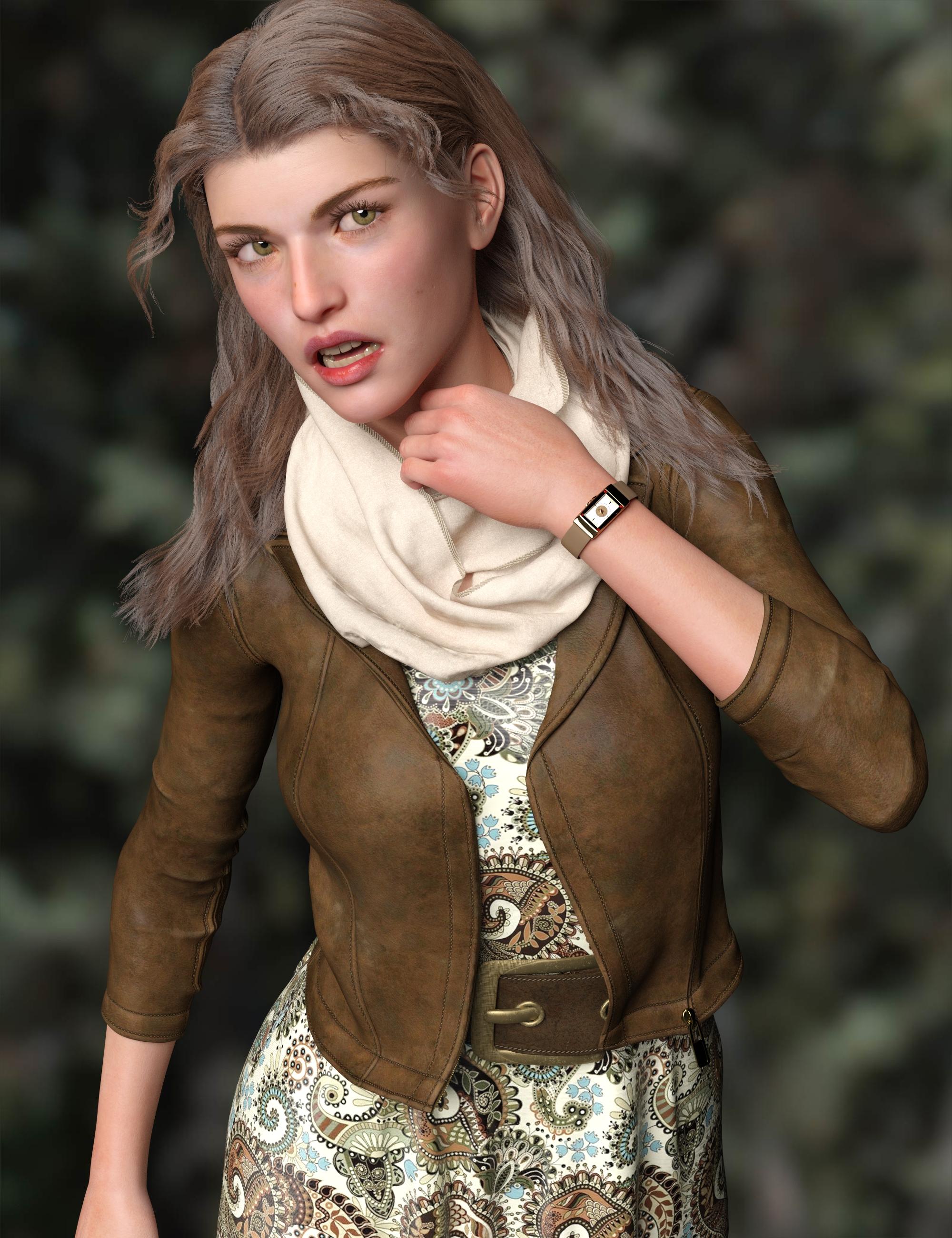 I got the dForce All Seasons Outfit for G8F and the supplemental texture set in PFAD today. There are also some nice watches in PFAD, which I already owned. The outfit has lots of options and even a couple texture sets, but it is complicated to dForce. Be sure to read and follow the PDF instructions for good results! Note that it doesn't come with any shoes. The shoes are sold separately, but I already have plenty of shoes, so I didn't but them. The character here is Virtual World's Elsa, which was PFAD a few days ago. She has lovely non-orange skin, a little blemish on her nose that attracted me, and natural teeth (maybe even a bit too stained, but a big improvement over the sparking Chicklets of most models IMO).