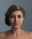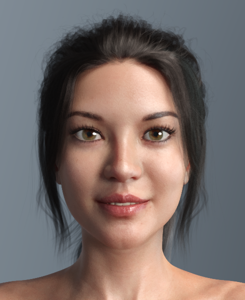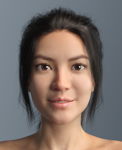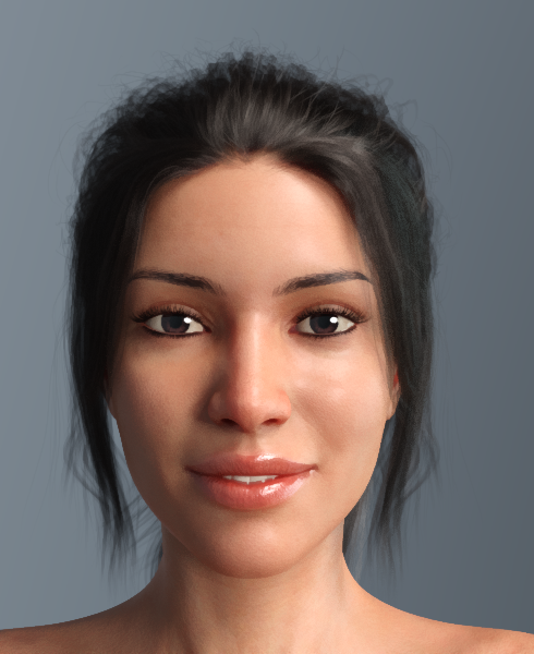 This blend looks really great together! And it's amazing to see how much difference materials can make. It's not just the color of the skin, but how the variations of the skin interact with lighting to give subtle differences in the way the facial shape appears. Look at all the shadows around the eyes on the Monique skin that aren't on the Eva skin at all, or how much broader the nose on the Eva skin appears than it does with the Monique skin.