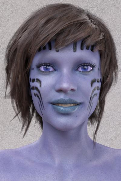 Grabbed this hair as one of the freebees, works well with vyktohria's To Dye For hair shaders (Rendo) which I've used here.  Character is Andromeda G3F .  Only 3 morphs, could have used Side Strands Left/Right here but it only has Forward/Back.