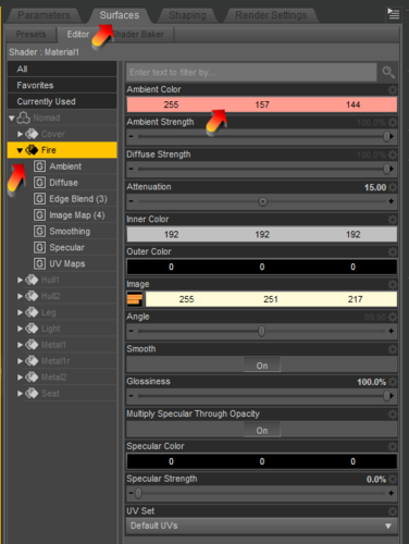 You may need to set the Diffuse colour to white - in Poser ambient is independent, and I expect that is what they are using, but in DS the ambient is multiplied with the diffuse, which is more realistic but can break using it for glows if the diffuse colour is not set correctly.