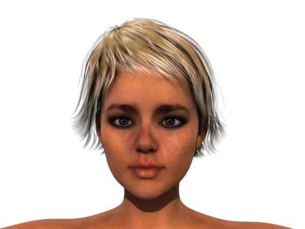 This is the 3Delight render, btw. The LuxRender gives her the lighter skin, but I seem to make a mess out of rendering the eyes via Lux. They come out rather black. :(
