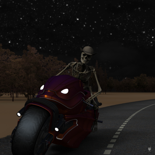 I like your BonJovi poster! That is clever to put a skeleton on that bike. Now you've reminded me I've never used that bike for much yet. =-)