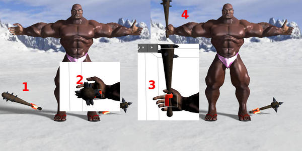 oHand.addNodeChild(oChild,true); // ...then reparent it to the hand