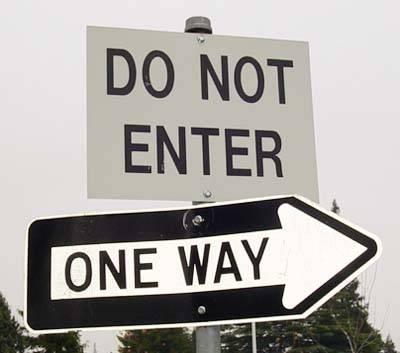 "Yeah, I'm at the corner of One Way and Do Not Enter."