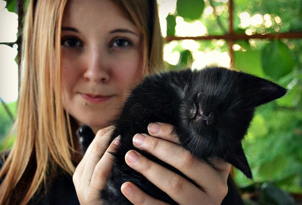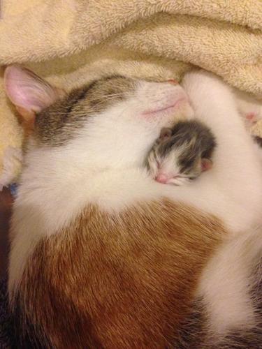 According to where I got the pic, the kitten fell asleep while they were taking the picture. :)
