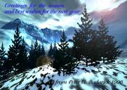 PS: The following picture would have taken 4 days to render. I had only 4 hours to do it [Christmas Eve was the next morning]. So i composited it in Bryce-ONLY. You could also do the composit in Photoshop. I used Photoshop for the text and lens flare. The original was very high resolution but unfortunately original files are lost now. The Trees were done in TreePro for MAC. All the trees were individual composit plates!