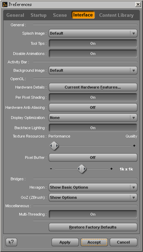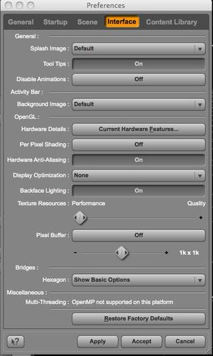 can you post a screen-cap of that settings window so we can compare options to get Daz3D working on less-capable computers.
