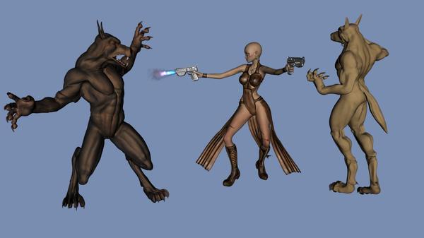 I have gotten this far with the image, still need to change a few things with it. How do I make the lycanthropes (both) look like they've been in more of a battle, like I've done with the lycan hunter?