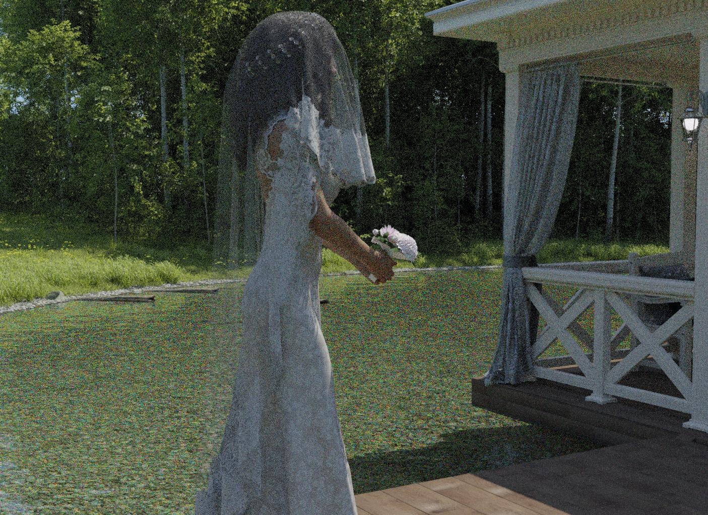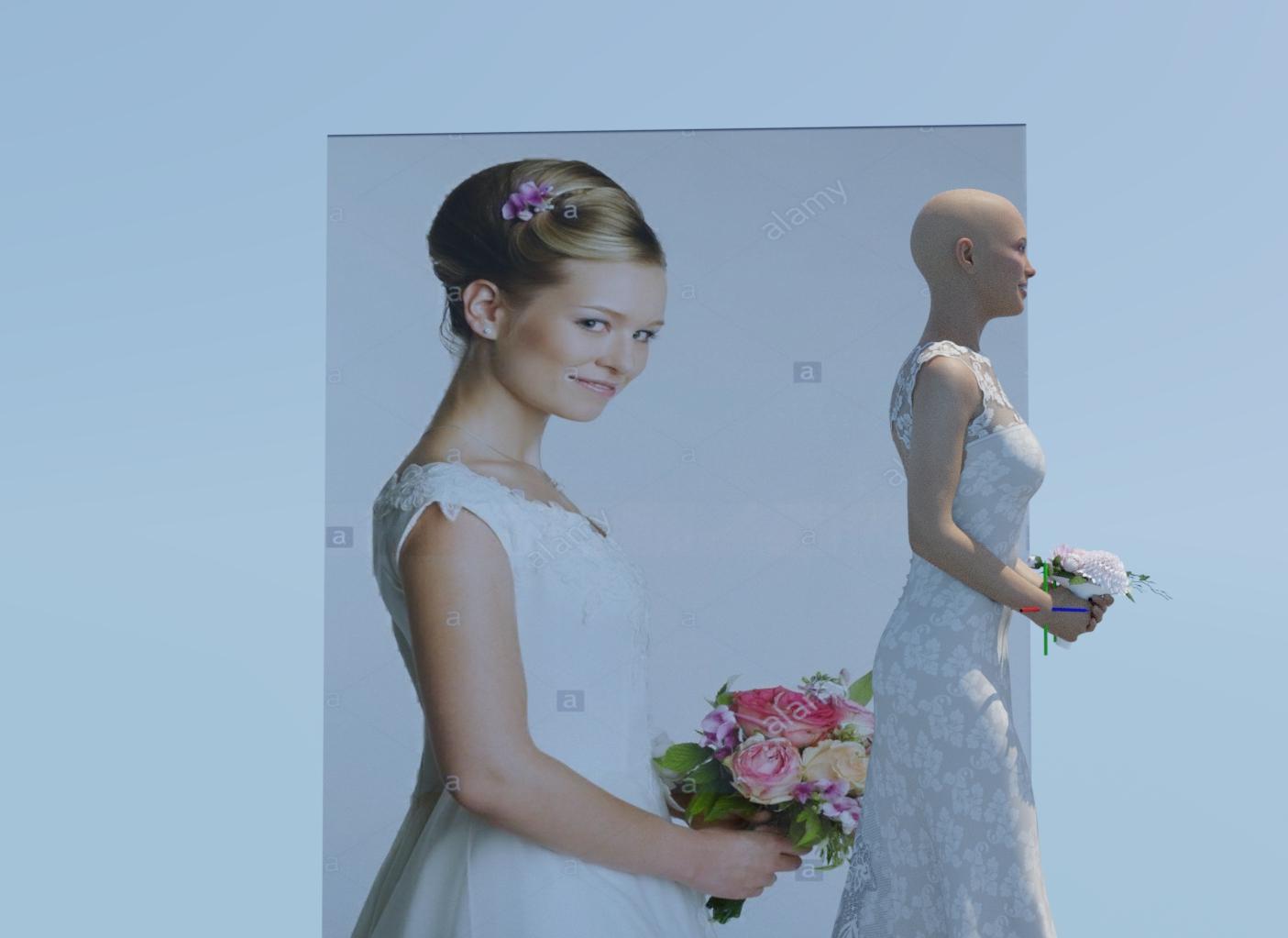 The whole posture is off with the back straight but bent forward at the hip. It looks like she's holding a sword instead of a bouquet and is preparing to lift it for an overhead strike.
