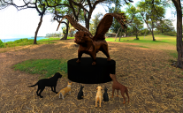 I need to change the background and make the statue more impressive. Maybe more dogs as well.