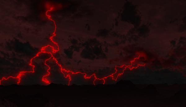 Couldn`t resist to give red lightning a quick try. That`s the lightning preset with ambient color changed to red tones on the lightning, one cloud layer, and a bit on the environment.