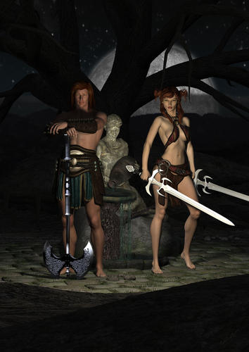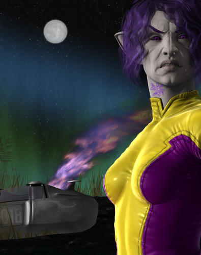 Here is my render with Night Builder... also played with skin builder, brow builder, and eyelash builder in this... I forget whose scifi eyes I used.. also used skycar and a Jepes flame. I made the moon smaller and whiter. I played with some creature and vampire morps of V6 to get the old alien face.