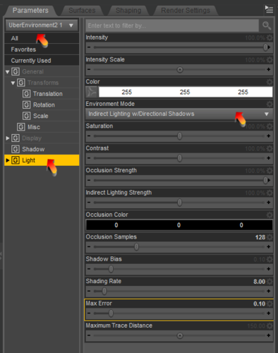 I know very well how to change the type of ambient. What I wanted to know is what you can read in my first post. In the marked control you can apply an environment map. And I think this is what Adam stated in one of his posts. But how does this work in detail? What has the map to look like to get the effect I described in my first post? And what kind of map used Adam for his picture to produce this 45° shadow produced by the UE2-IDL?