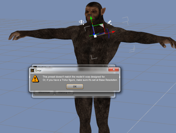 I am having a problem getting the Beastman to load in DS 4.6.1.39 with the Look at My Hair preset. I open DS, load the Basic Male Genesis figure, then travel to the RawART folder and locate the Beastman. I add the Beastman's morph file, then I add Beastman's MAT's and then I try and add the Look At My Hair preset for his whole body.