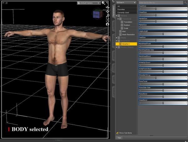 Poses will apply straight away, and you will see them in the Viewport, morphs need to be dialled. When you have applied your morph, go to the Parameters pane (with the Head selected), and you will find sliders there for the morphs that you have INJected.