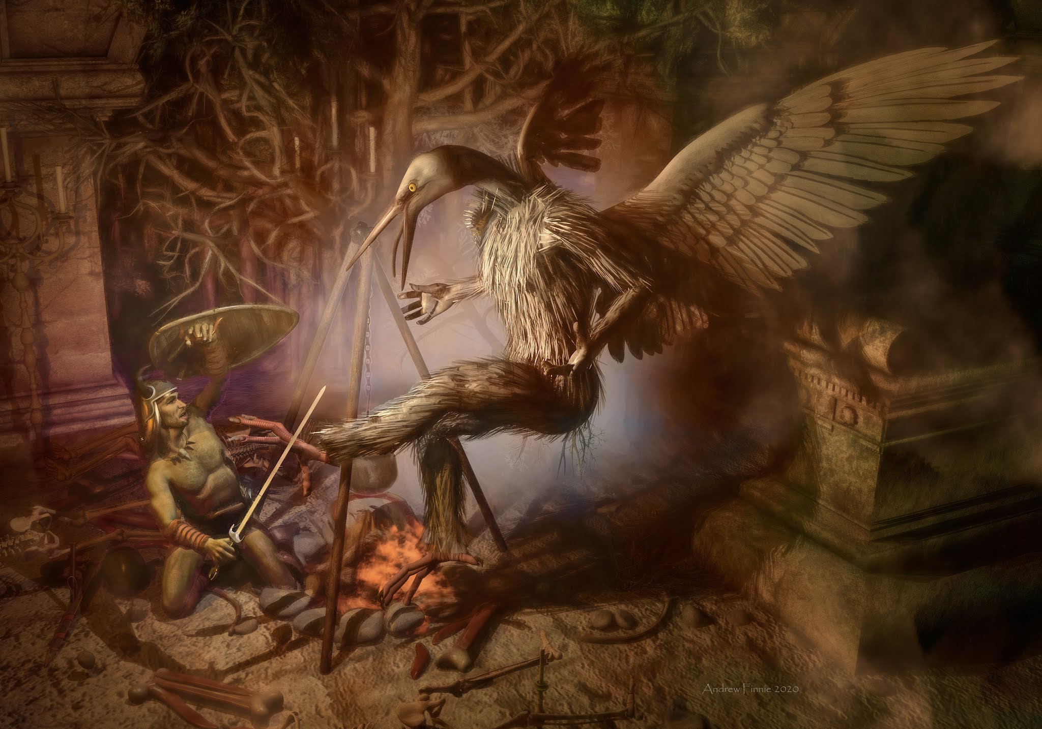 Here;s my guy in Sity. In 'reality' Hercules had a bow and arrow and there was more than one bird. But Legends are made to be bent. Its a 4000 pixel image if you want to see the fleas