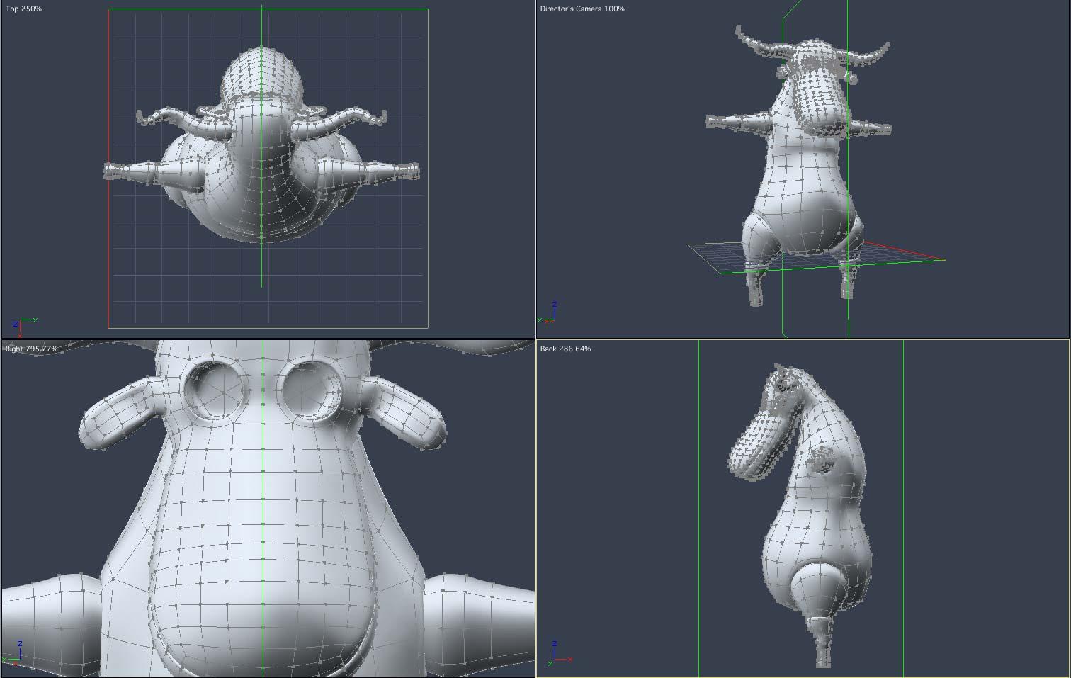 Here is the latest progress on the Woofus. I had a couple of my usual false starts.  Currently I'm experimenting with strips of polygons in curls for his fur. Still a total WIP.