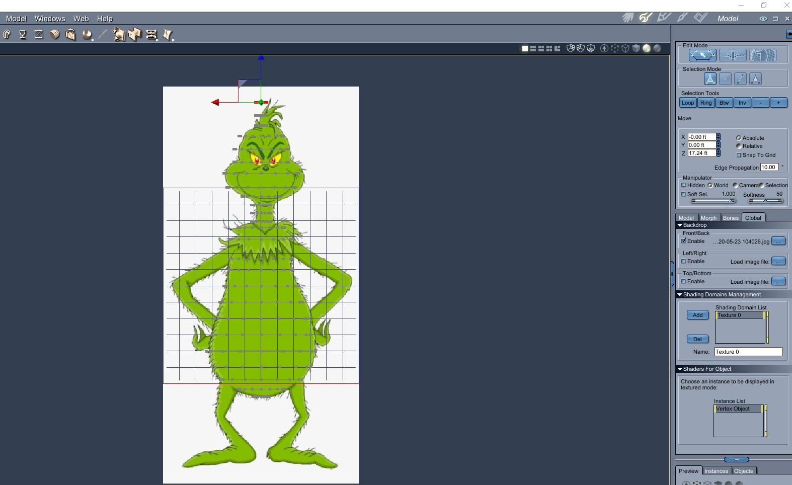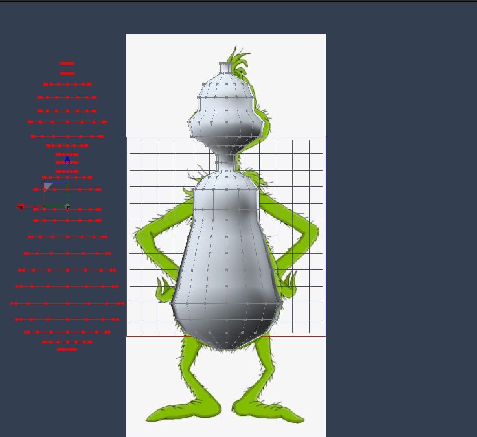 It is still extremely low res and very rough, but I hope you can see it start to look like a grinch.