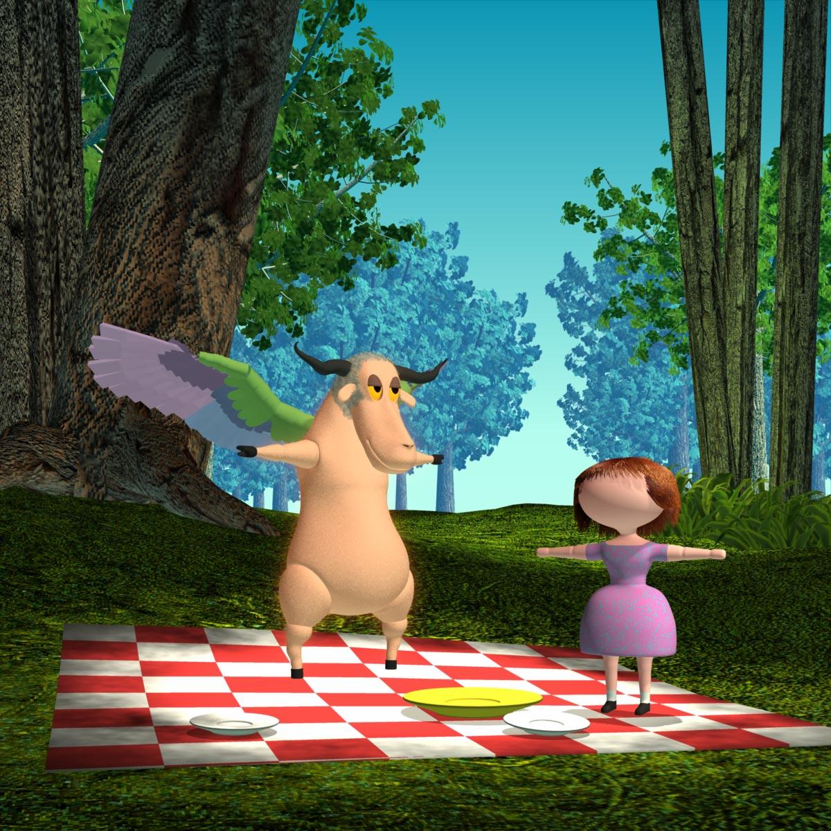 Figures still need to be rigged. Girl's hair is just a stand-in simple hair mop on her head. I want to add more trees / vegetation so there isn't quite that precipitous drop off over the horizon there...wink