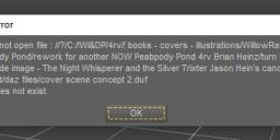 I went to open the old files (four consecutive saves because I'm used to daz files corrupting during saves) ... this was before I bought content gatherer. This error pops up for each of the four files.