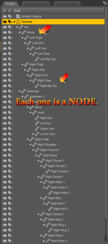Okay it is this simple, each Body part that can move or lists in the Expanded Scene Tab for a Figure is a node...