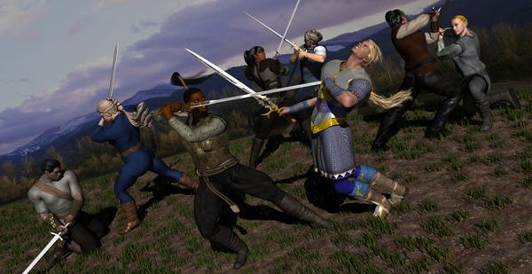 Nice render GallComm. Geometry doesn't use much memory. Large textures do. I might be wrong. Watch the moderators correct me... lol. But my own tests reveal most props and clothes use textures 2,500 by 2,500 pixels or larger. Figures and some clothes use 4,096 x 4,096. I'm not sure about shadows or special effects though.