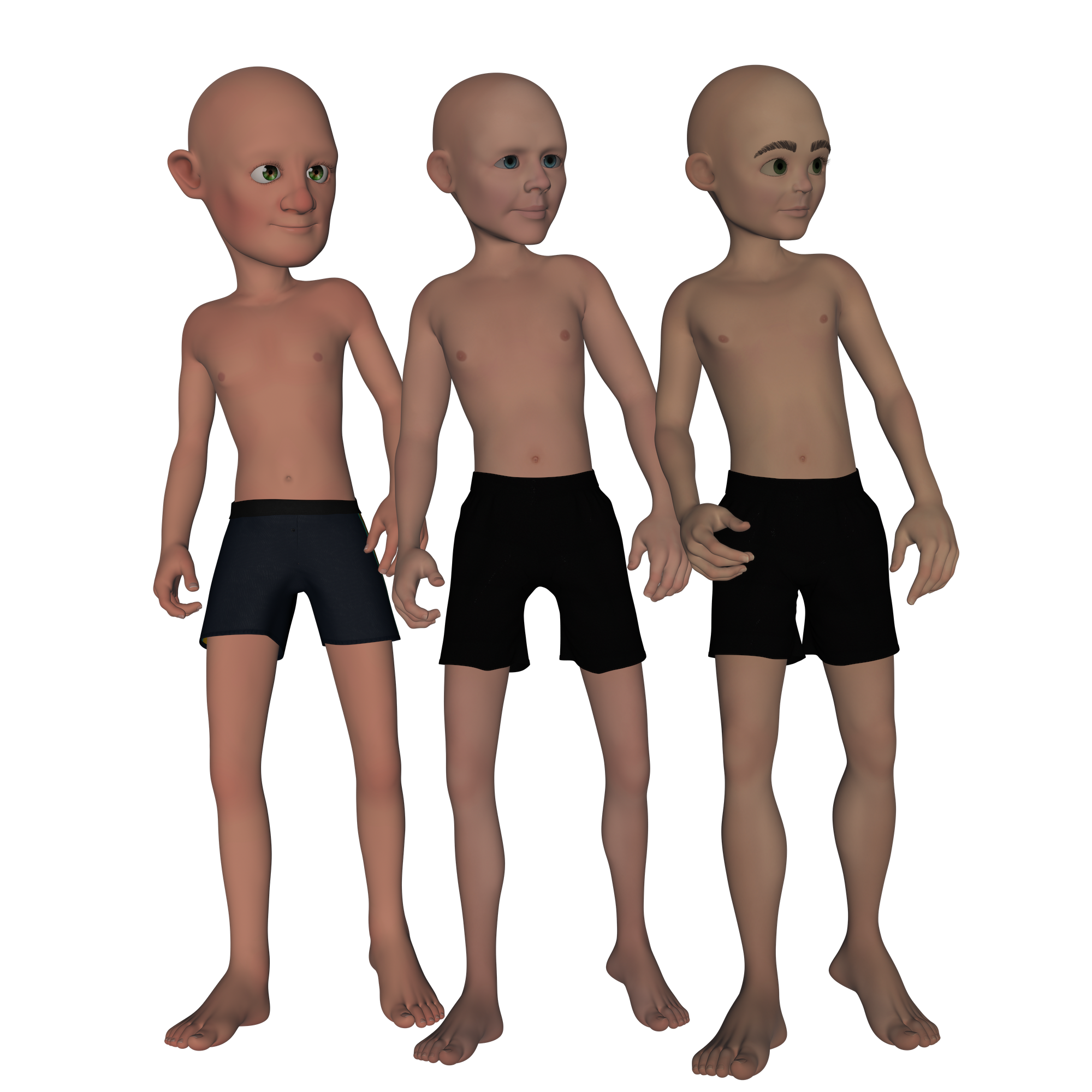 here a side by side on the males ToonGen2 ToonGen8 ToonGen4 all of them are set at age 35 ,yeah rediscovered an issue that bugged me with the hair not fitting ToonGen 2 but anyway ...here be the guys ..