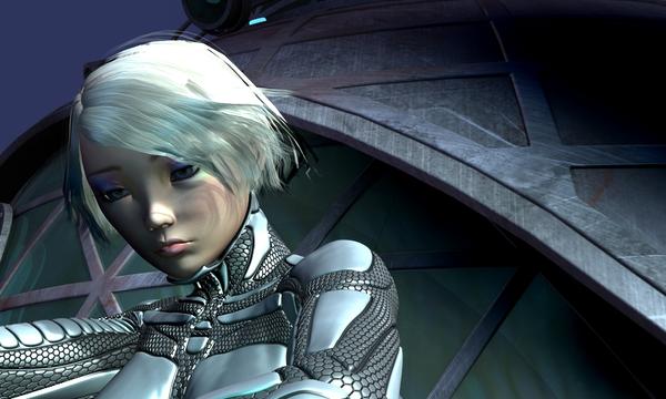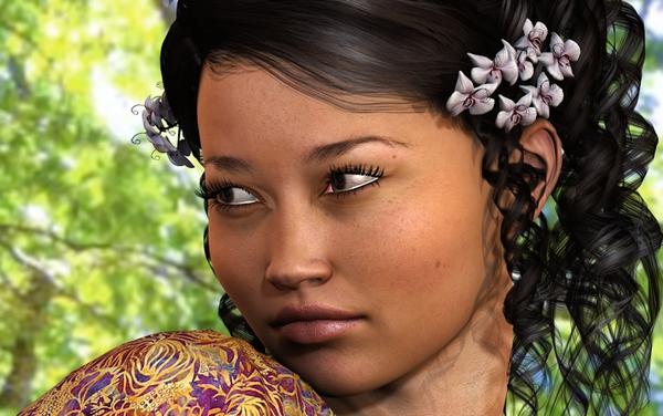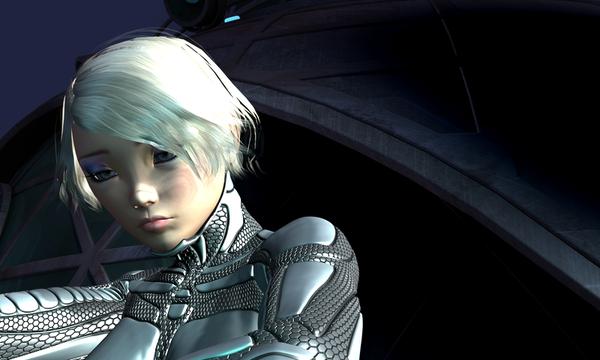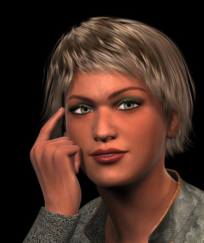 Final render after fixes to the hair and eyes. I added more reflection to the eye reflection surface and changed the hair to Riva Updo. I also cropped the image to show more detail of "her" features.