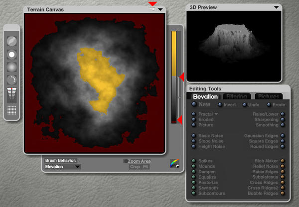 @Bruce - there's always more than one way to do something. There's no better or worse, only more or less appropriate for the task at hand and the tools available. I've resorted many times to Photoshop to create a terrain. Problem here is that not many graphics applications can save as 16-bit gray-scale TIF the TE needs to make a terrain without steps of it.