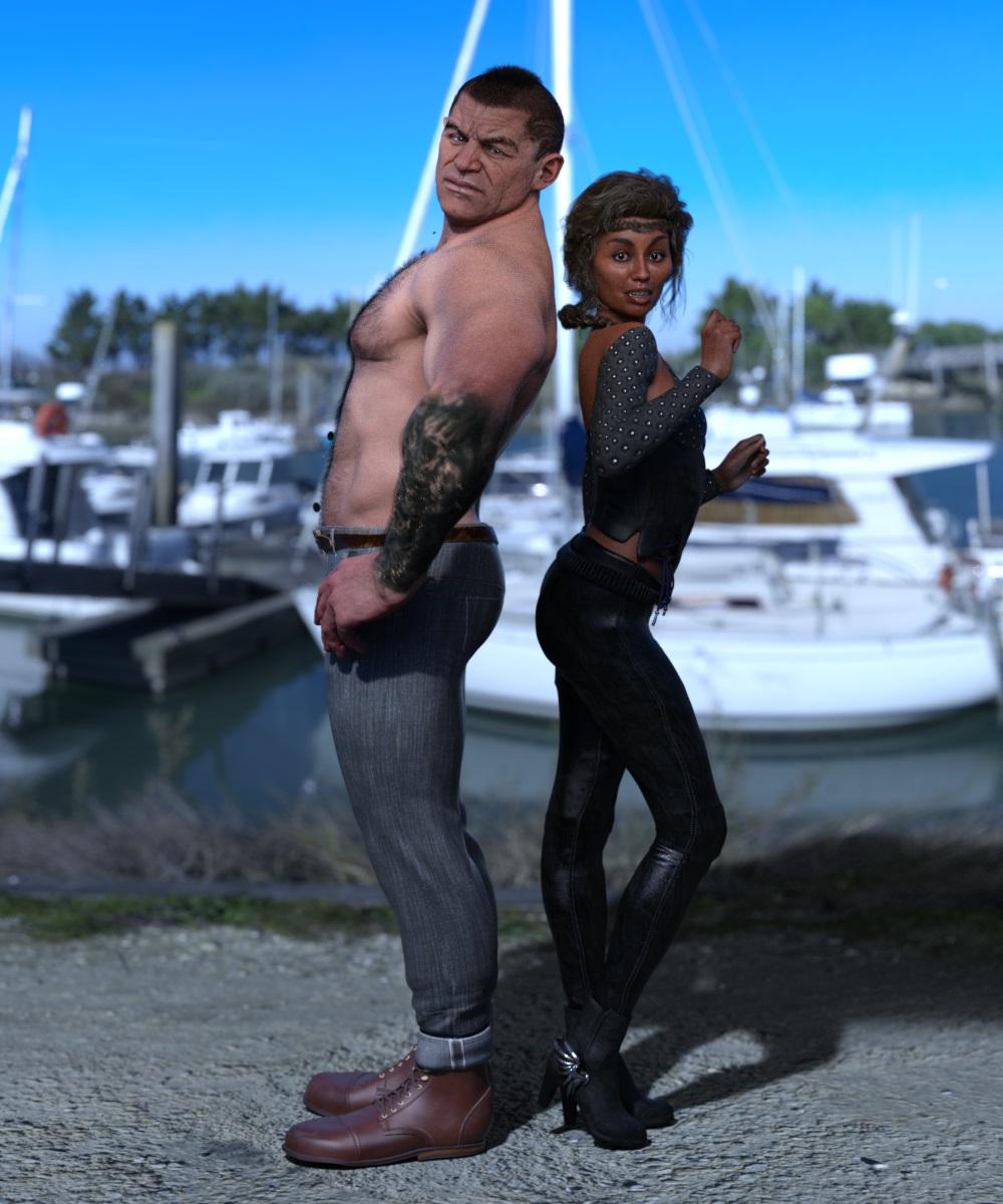 The outfit is Contemporary Romeo converted and dforced and with some alternate textures. It dforces pretty well, you just have to use a weight node to keep the area around the belt and laces steady (you could probably get away with just dforcing the sleeves if you're not into weight painting)
