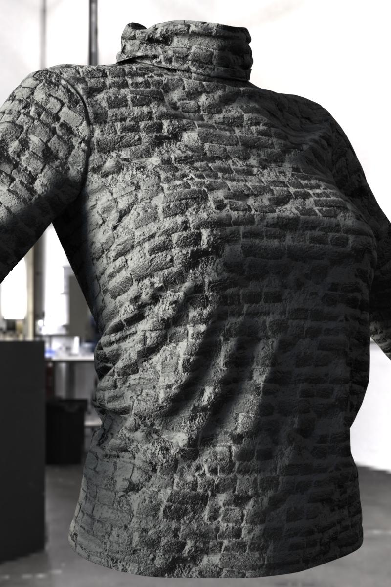 here's a shirt with tiling texture in cycles, no displacement, just bump and normals.