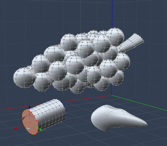 grapes were duplicated several times and a cylinder was used for the stem with a bend applied.